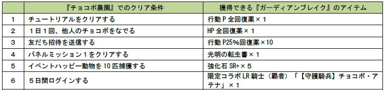 「チョコボのチョコッと農園」が「プラチナ☆ガール」&「大激突!!ガーディアンブレイク」とコラボを実施