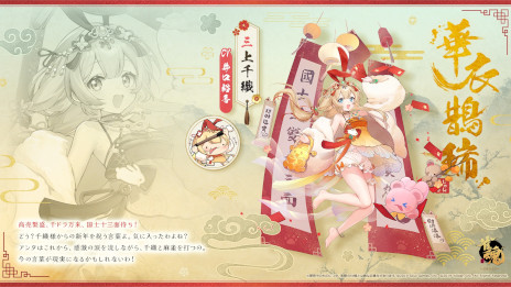 「藤田佳奈(うごく着せ替え)」「三上千織」「サラ」「ゼクス(うごく着せ替え)」の新規着せ替え「華衣鵲瑞」が発売された。
