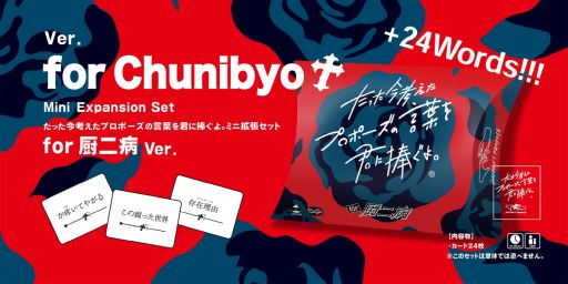 札幌市にあるボードゲーム・謎解きゲームのメーカーClaGla(株式会社クラグラ)は、『たった今考えたプロポーズの言葉を君に捧ぐよ。』のミニ拡張セット「for 厨二病」を2024年4月20日(土)に発売します。