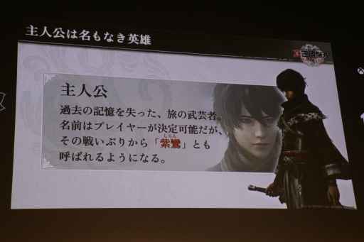 また,本作は従来の「真・三國無双」シリーズとは異なり,オリジナルの主人公が存在することも紹介された。この主人公は記憶を失った名もなき青年で,さまざまな英傑と交流しながら各地で起こる戦に身を投じることとなる。