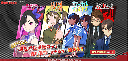 ゲーム化,漫画化100%を目指す電子小説レーベル「キマイラ文庫」発表。「異世界居酒屋『のぶ』」の蝉川夏哉氏が編集長