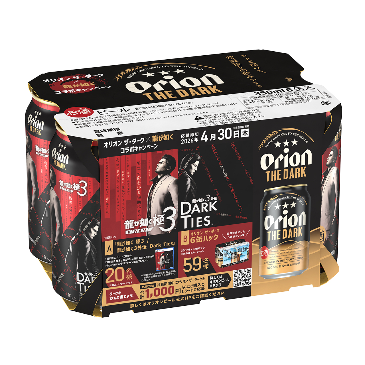 「龍が如く 極3 / 龍が如く3外伝 Dark Ties」がオリオンビールとコラボ。コラボデザイン缶やグッズを販売