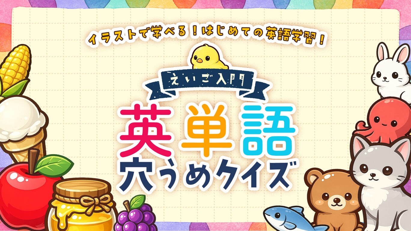 英語入門 英単語穴うめクイズ 〜 イラストで学べる!はじめての英語学習!〜