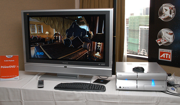 実際にSAPPHIRE RADEON X1600 PRO HDMIのHDMI端子を使って液晶テレビに接続するデモンストレーションを公開